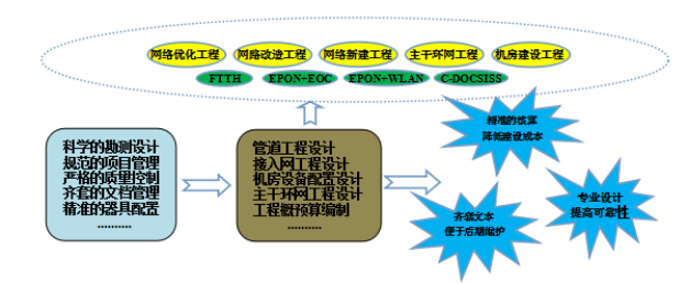 银娱优越会GEG网络规划设计团队长期从事产品研发、勘测设计、工程施工管理,对广电网络及其业务具有较深的认识,拥有精深的专业知识及丰富的行业经验,是一支从事广电网络规划设计的专业化队伍。业务入围江苏、重庆、黑龙江、福建省网,在江苏无锡、苏州、淮安、盐城、泰州、徐州等及福建莆田、宁德、三明等20多个地级市城市全面召开了80多个项目的规划设计业务,并取得了明显的优势,为提升用户在技术方案、工程施工、工程预算等方面的水平给予了完整的服务,并取得一致好评。